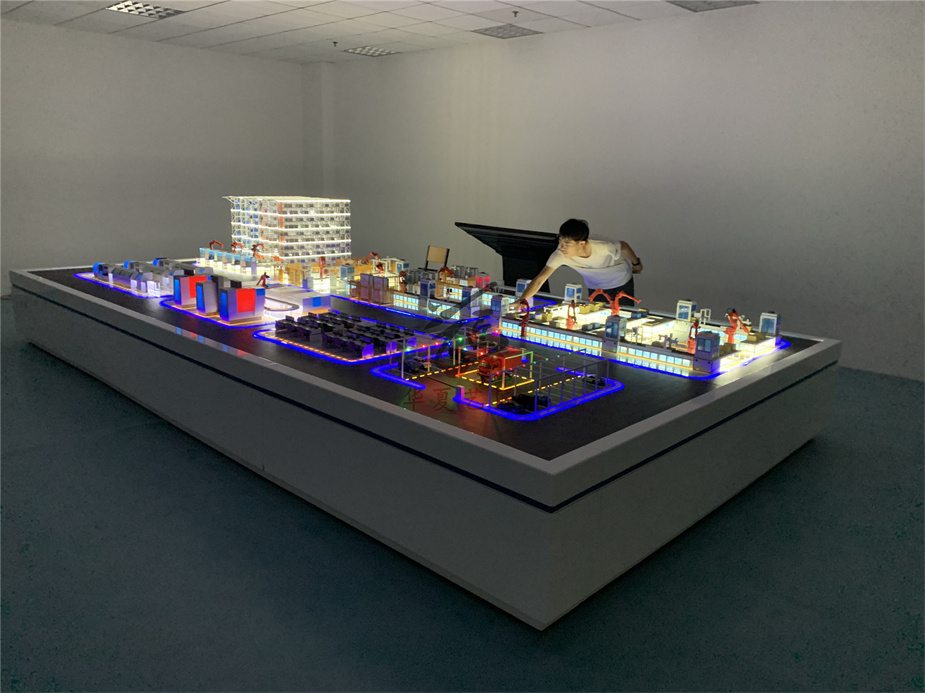 模型主要以ABS板,進口亞克力有機玻璃,高強硬性工程塑料為主制作,以現(xiàn)場的實際顏色噴上油漆,在模型各處安裝上低壓的日光燈、路燈、射燈,需要動作的部件安裝有低壓慢速電機,在模型各個區(qū)域合理布置綠化帶,模型整體可進行全方位仿真動態(tài)演示,美觀逼真。